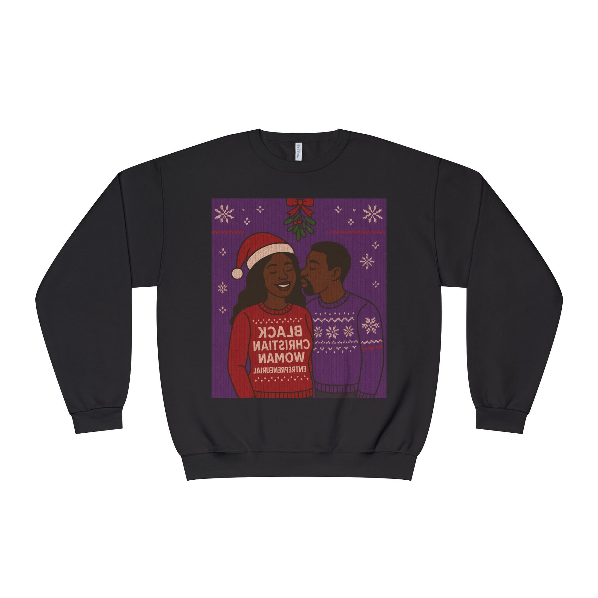 Black Christmas Woman Couple Sweatshirt | Holiday Mistletoe Illustration